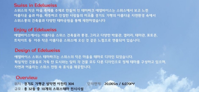 아름다운 알프스 스위스 마을 에델바이스 스위스테마파크