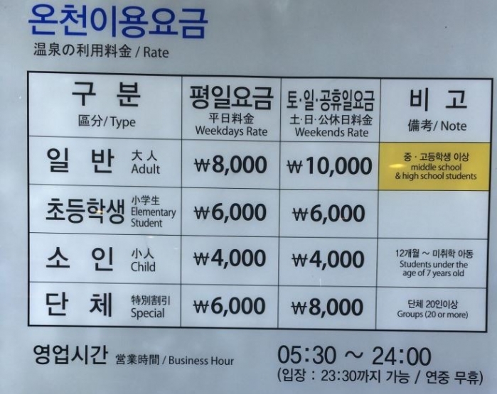 | 4층 | 온천시설 (05:30~24:00) | 남,여 락카, 안내데스크, 이발소, 구두수선실 |