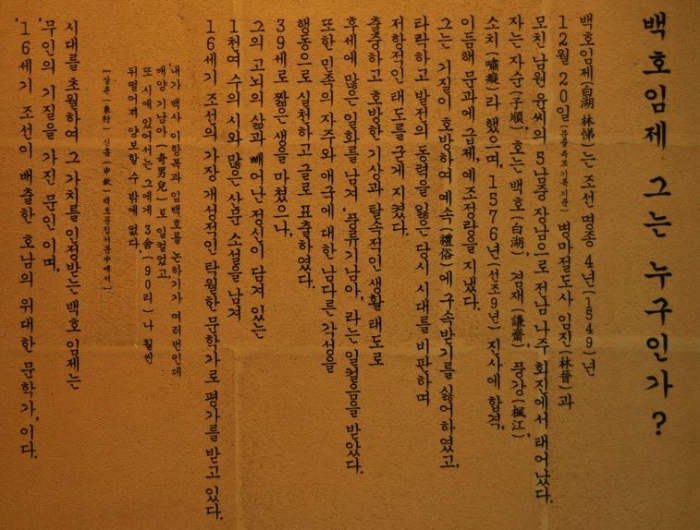 백호 임제가 글을 쓰던 곳이어서