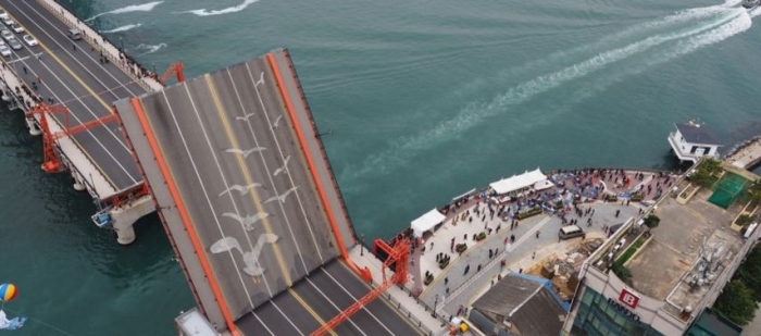 부산시 중고-영도구 연결 다리이며 하루 한 번 배가 지나가도록 중간에 뚜껑이 열리는 개도교