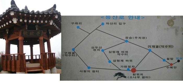 이 산에서 서쪽 바다이 석양낙조와 황포돛대가 어울리는 경관을 거문고등을 타고 노래를 부르면서 감상하였다 하여 가현산(歌絃山)이라고 고쳐 부르게 되었었다.