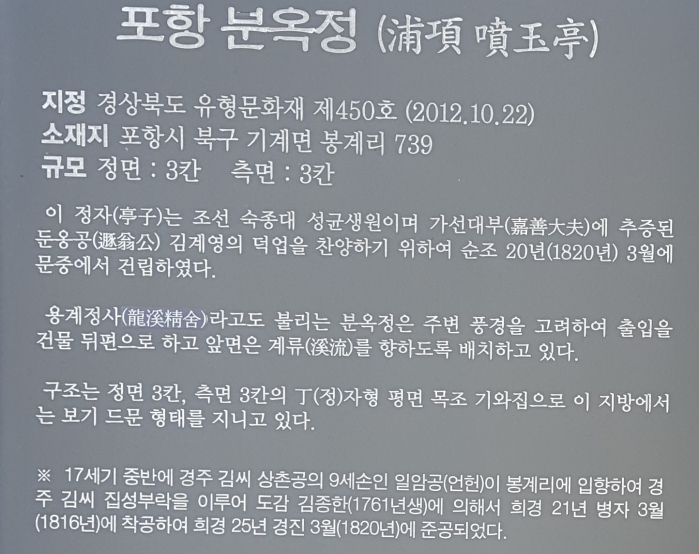 태그포항 분옥정김계영용계정사포항 기계면 봉좌마을봉계리경주김씨집성촌화수정만지송말미평지봉계수변공원
