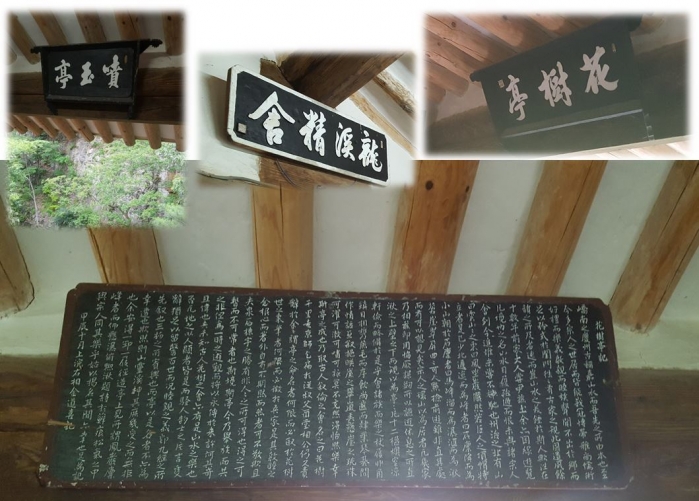 옥 가루를 품어낸다는 계류의 모습을 따 분옥정이라고 지었고, 화수정 용계정사 청류헌 등 여러 이름으로 불린다. 추사 김정희의 필체라서 유명하기도 하다.