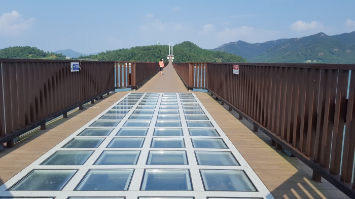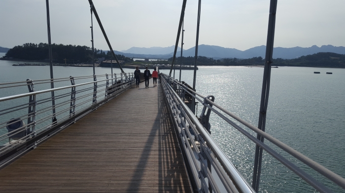 가우도 출렁다리; 강진군의 유일한 유인도(일곱 가구 정도 살고 있다 함)인 가우도를 바다 위 걸어서 건널 수 있는 해상인도교로 연결