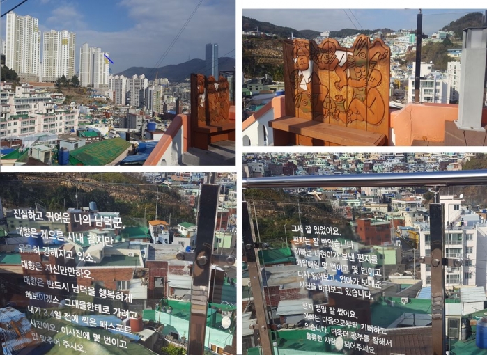 산복도로 (山腹道路)는 산(山)의 중턱(腹)을 지나는 도로인데, 우리에겐 산동네길이나 달동네길이라고 부르는 게 더 정감이 가지 않을까? 아니면 부산의 산토리니라고 부르던가..