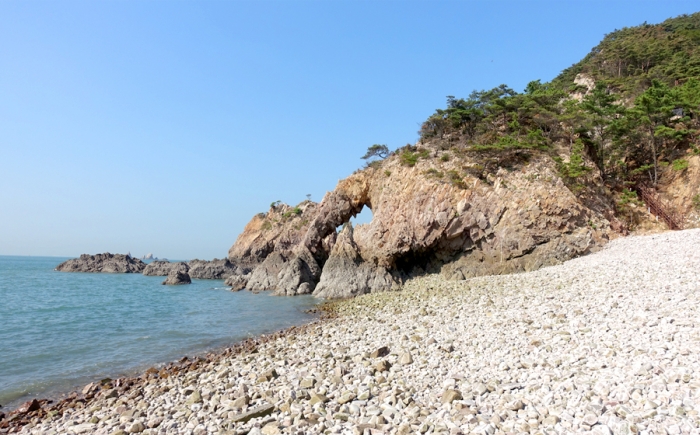 ❍ 서쪽은 바위절벽으로 서해와 접해있고 금을 캤던 2개의 동굴이 남아있으며, 산 정상에는 예로부터 풍년과 안전을 기원했던 당집을 복원하여 매년 봄 제향을 지내고 있다.