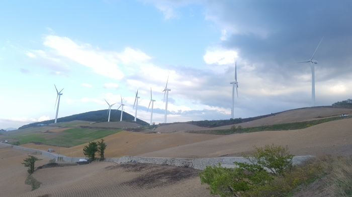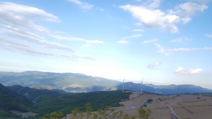 해발 1,303m 매봉산, 고냉지 배추 산지이며 풍력발전기들이 색다른 풍경을 자아낸다.