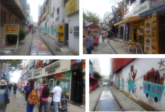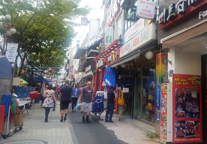 온통 영어 간판이 달려 있고 외국인들이 많이 통행하는 공간이며 다문화가 형성된 곳임