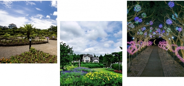 2만6천평의 허브동산 속에 약 150여 종의 허브와 우리 산하의 야생화가 채워진 각양각색의 정원과 작은 동산들, 그리고 2,000여 평의 체험감귤 농장 등 다양한 형태의 테마공원이 조성되어 있다. 또한 허브동산을 휘어감은 산책로, 허브샵, 카페 등 연인들의 최고 데이트코스로, 가족사랑의 공간으로 애용된다.