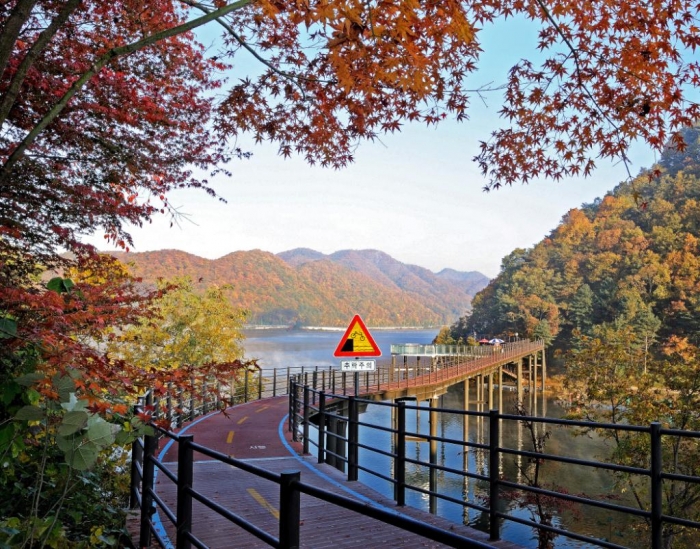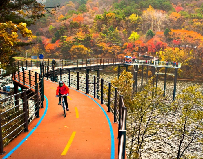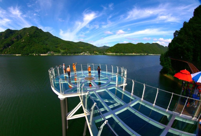2014년 춘천시 의암호 주변 김유정문인비와 송암스포츠타운 방면을 연결하는 길이 100m의 교량 중간에 만들어진 스카이워크는 6개월간 약 30만명의 방문객이 몰릴 정도로 큰 인기를 끌고 있다. 스카이워크는 허공을 걷는 듯한 스릴을 느낄 수 있도록 전 구간을 투명 강화 유리로 마감했다.
