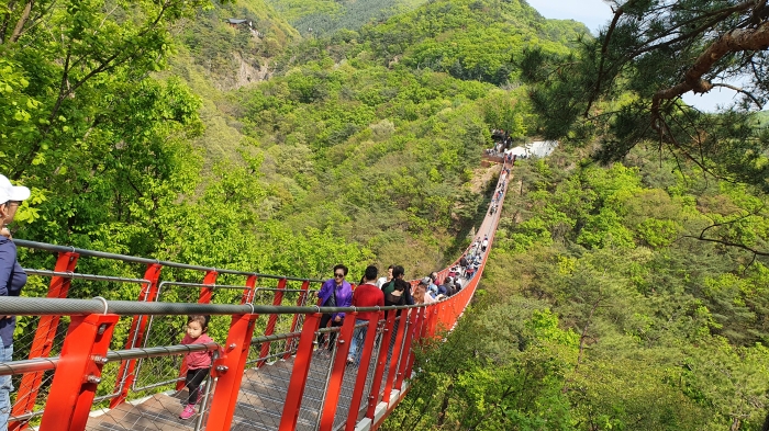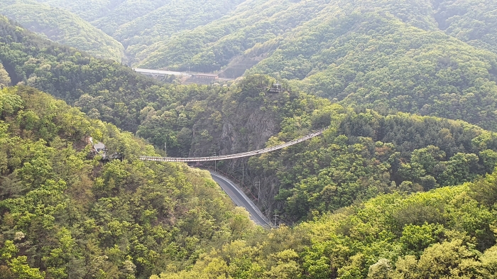 감악산 둘레길의 시작점에 위치한 출렁다리는 도로로 인해 잘려져 나간 설마리 골짜기를 연결하여