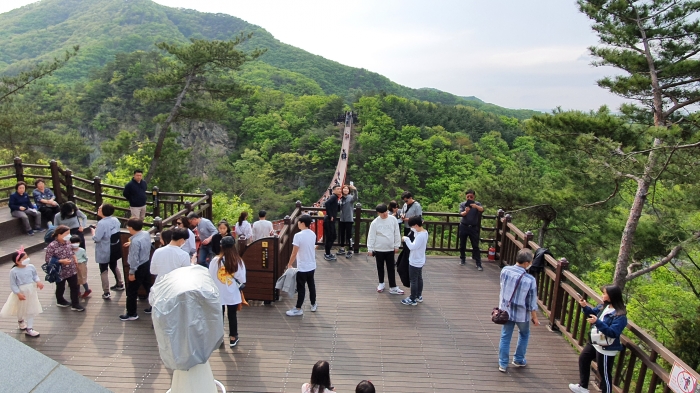 온전한 하나의 것으로 만들어주는 다리로, 출렁다리는 자연과 조화를 이루도록 시공한 150m의 무주탑 산악 현수교이다.