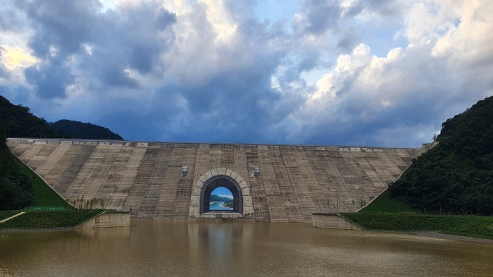 대형 트릭아트가 댐 하류쪽 벽에 그려져 있다. 95mx60m 통일로 향하는 문인데 세계최대 규모 트릭아트라고 기네스북에 등재되었다고 한다.