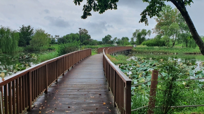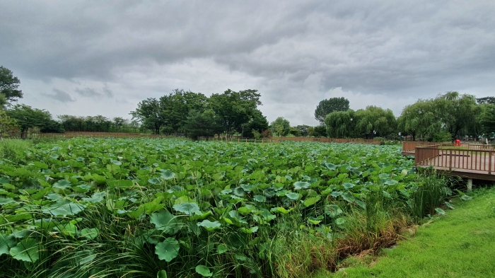 나무데크가 단단하게 깔린 소풍정원을 산책