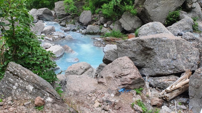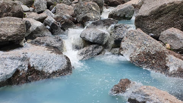 비고 30m의 폭포로 석회질 성분으로 인해 신비로운 비취색의 물빛이 특징