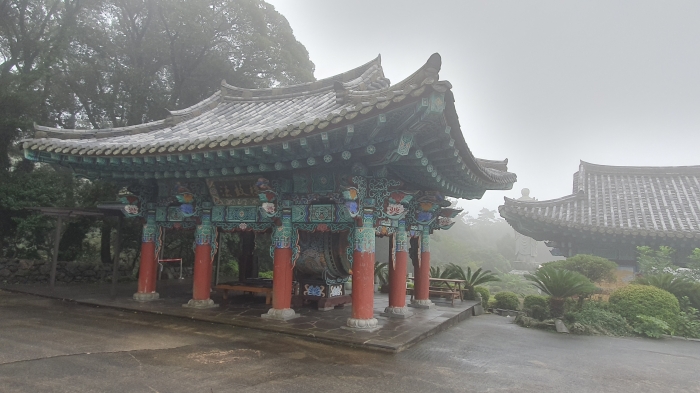 삼성각·독성각·범종루·불이문·보광당·사천왕문·법고루·옥칠불전·금강문 등이 전통 가람배치양식으로 들어서 있으며 특히 <대적광전>은 제주도 내 사찰 법당 중 유일하게 중층 목조로 축조돼 있는등 사찰 건축물의 연구 자료로서 학술적 가치가 높아 문화재로 지정되어 있습니다.
