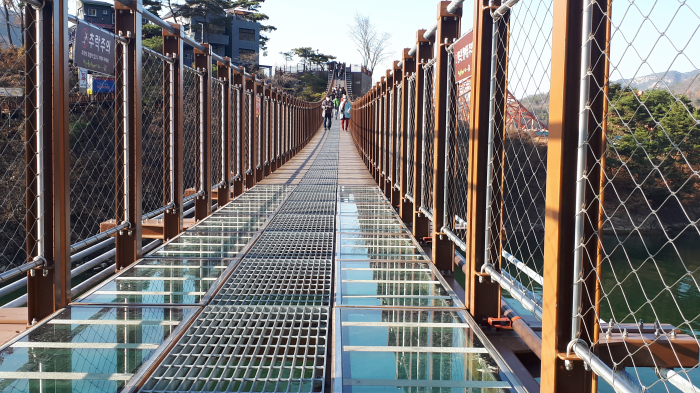 청풍호반 수면 위에 길이 222미터, 너비 1.5미터의 연결다리