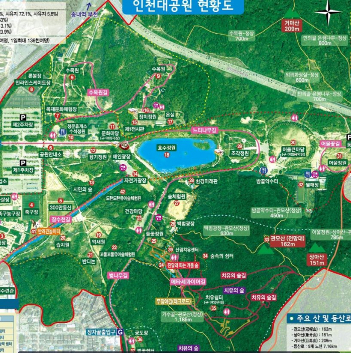 인천대공원은 연간 400만 명의 시민들이 찾는 수도권의 대표적인 공원이며, 누구나 맑은 공기를 마음껏 마실 수 있는 휴식공간입니다. 그리고 자연을 만끽할 수 있는 즐거움과 여유롭게 힐링할 수 있는 휴양공원입니다.