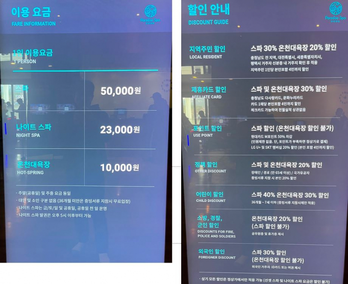 여기 써 있는 것 지역주민할인은 충남 전역 대전 세종 평택까지