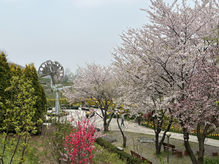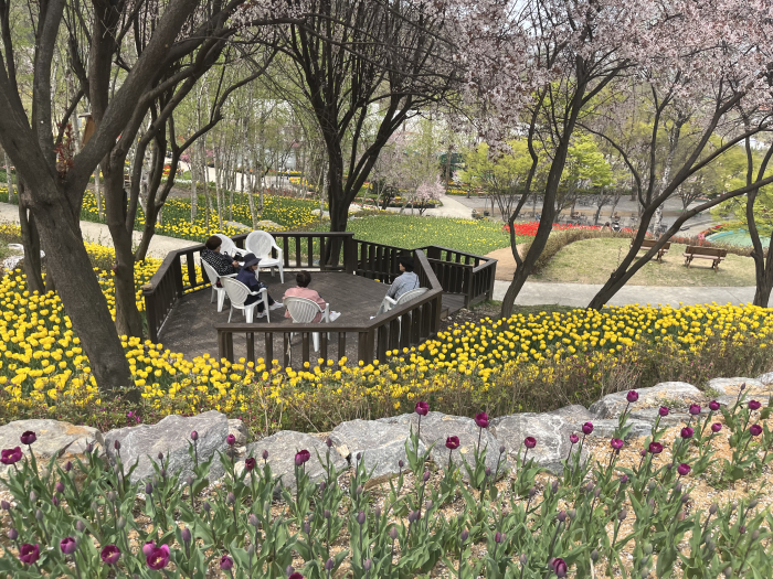 철따라 다른 꽃들이 피어나고, (봄- 수선화 튤립, 여름- 수국, 가을- 국화, 겨울- 별빛과 레이저불빛)