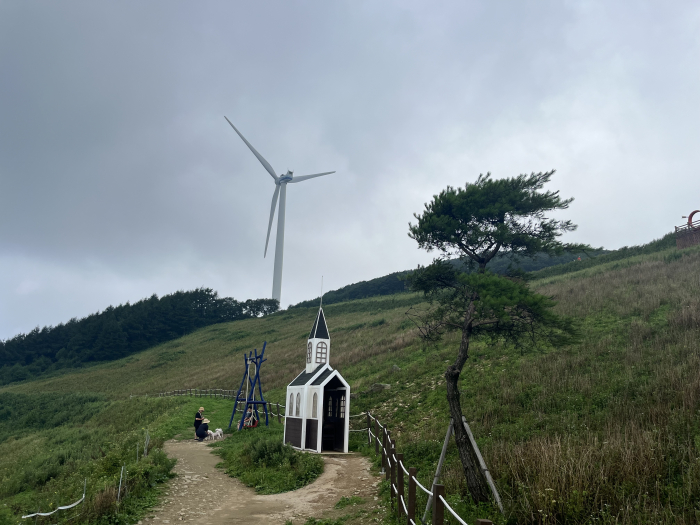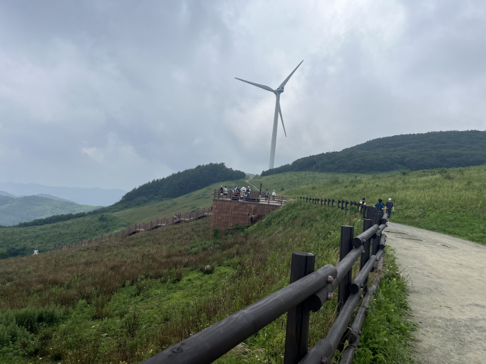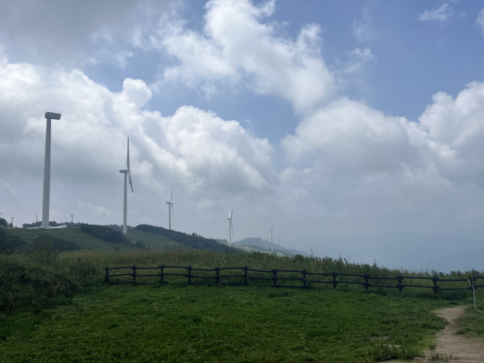 굽이굽이 굽어진 산길을 따라 차를 타고 올라가다 보면 능선을 따라 풍력발전기가 보이기 시작한다. 이렇게 가까이서 발전기를 볼 수 있는 것만으로 신기한 경험을 할 수 있다. 발전기가 하나 둘 보이기 시작하면 점점 하늘로 올라가는 기분이 드는데, 비행기를 타서 바라보는 하늘과는 또 다른 느낌이다. 파란 하늘에 가까워지고 구름은 손에 잡힐 듯이 내려앉은 것 같다. 올라가는 길의 풍경만으로도 설레는 시간이다.