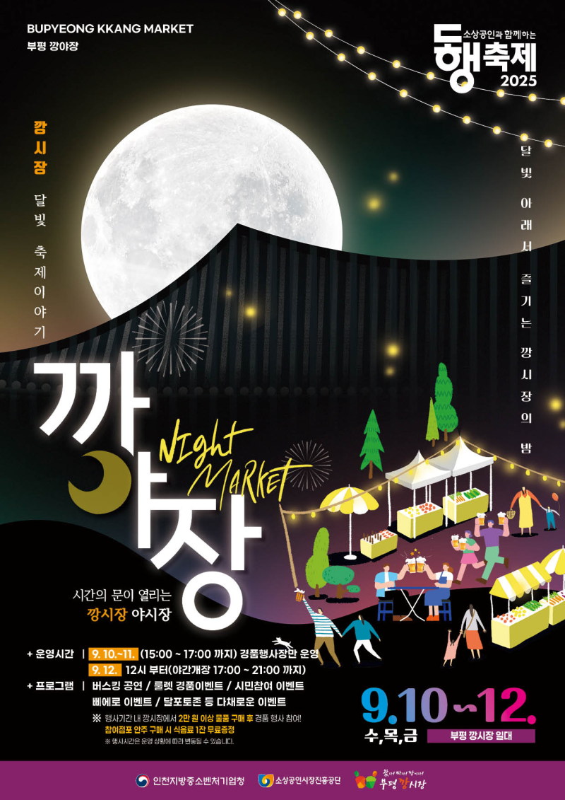 소상공인의 동행축제 ‘깡夜장 페스티벌’이 부평깡시장 일원에서 9월 10일(수)부터 12일(금)까지 개최된다.