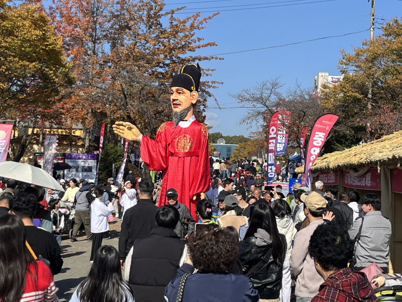 여주오곡나루축제는 여주시 주최, 여주세종문화관광재단 주관으로 열리는데, 작년에도 올해도 한국관광공사 중국 칭다오 지사가 도움을 줘 축제 기간에 한중교류사업으로 1천여명의 중국 관광객이 방문했습니다. 붉은색 물결이 장관입니다.