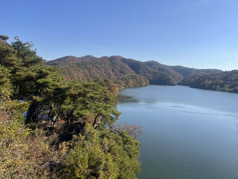 지금부터 양 켠의 호수를 보며 걷기에 좋은 힐링 코스인데